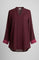 Elevate your wardrobe with this effortlessly chic tunic. Crafted in a rich, deep maroon hue, this piece blends professional polish with contemporary flair, making it a versatile staple for both the office and evening outings.